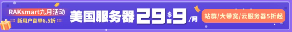 RAKsmart九月秒杀福利,国外vps低至$1.99/月,美国服务器$29.9/月 站群/大带宽/云服务器5折起
