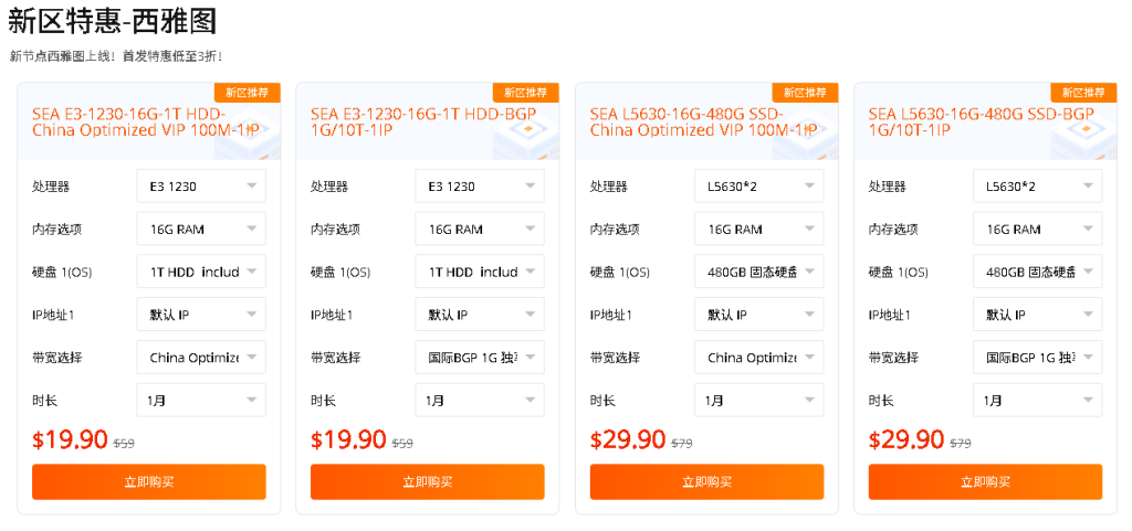 新区特惠-新节点西雅图上线!首发特惠低至3折!