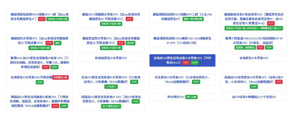 台湾双ISP原生住宅动态IP大带宽VPS 【中华电信 hinet】