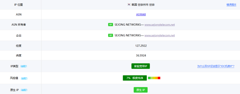 测试为韩国原生IP