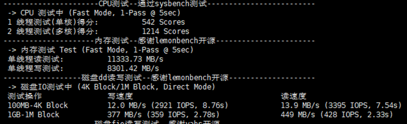 CPU、内存、磁盘等测试数据