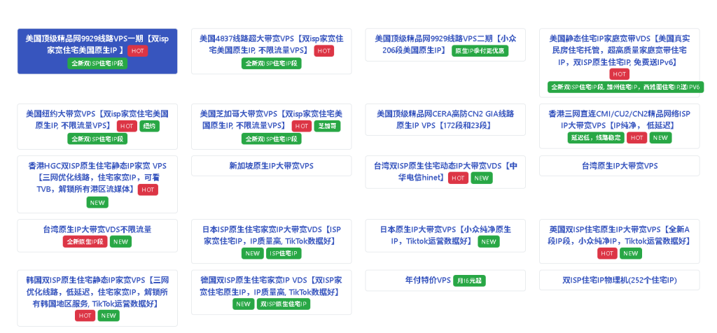韩国双ISP原生住宅静态IP,家庭宽带原生VPS,三网优化线路, 韩国本土宽带运营商原生住宅静态IP,住宅家宽原生VPS,三网优化网络,三网延迟低,传家宝理财产品。IP纯净,Tiktok运营数据好。