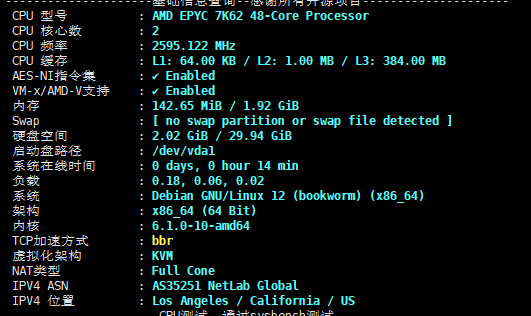 此次测评机器配置是2C2G 50Mbps的配置