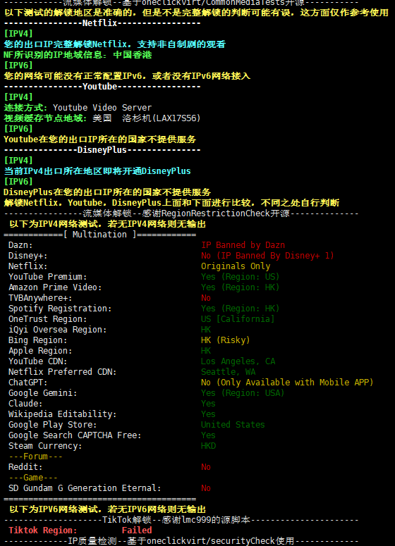 流媒体解锁测试