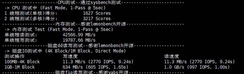 CPU、内存、磁盘等测试数据