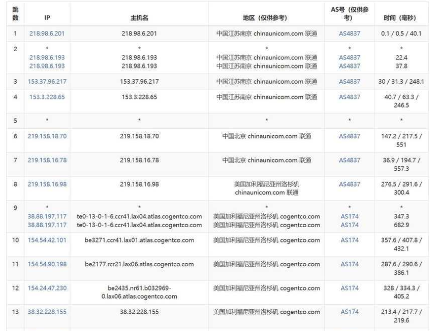 联通去程路由是从北京网口出去,然后直连洛杉矶机房。