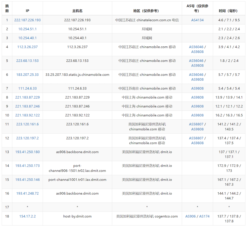 移动节点的去程,也是通过上海移动节点出海的。