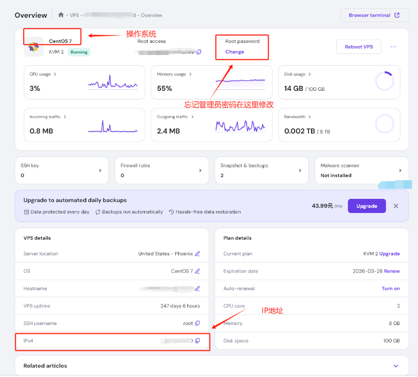 在vps管理界面,我们可以看到关于vps主机的详细信息,包括: