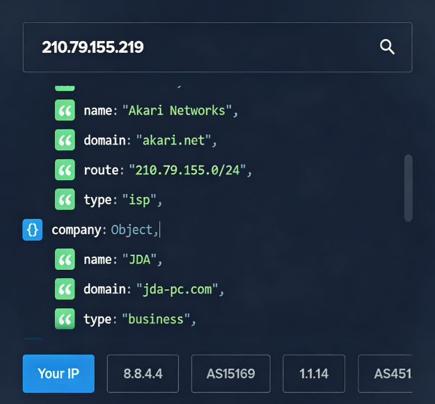2 210.79.155.254 0.40 ms AS38136 China, Taiwan, Taipei City