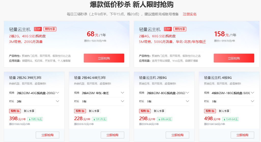- 阿里云新老同享、续费不涨价99元一年,200M峰值带宽38元一年:点击直达