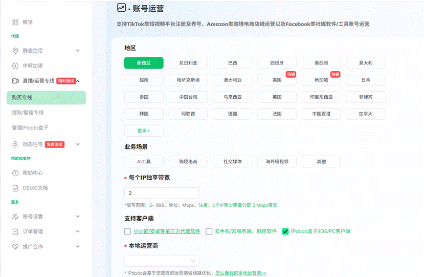 现在越来越多的企业和个人开始布局海外市场,特别是TikTo等各类平台的爆发式增长,让无数商家看到了跨境直播、开店的巨大商机。然而,网络环境搭建起来却让人头疼。IPdodo为满足跨境个人、跨境直播、TikTok商家等用户的网络需求,推出本地住宅宽带线路,为全球各地的用户提供稳定、流畅、高带宽的专线连接。