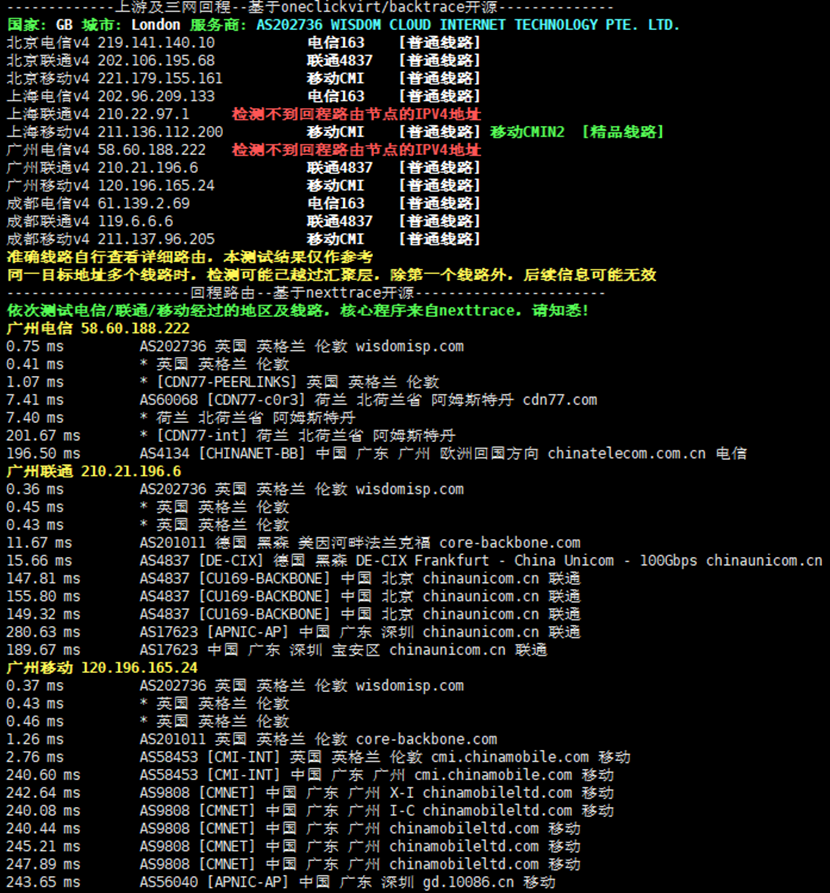 AMD EPYC 7002,主频2800MHz,底层为KVM虚拟,启用了BBR,不支持IPv6,上游提供商为wisdomisp,归属地为英国伦敦