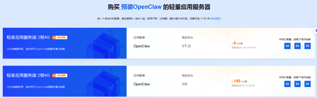 阿里云OpenClaw安装入口链接:点击直达 登录你的阿里云账号,基本上是傻瓜式操作,根据提示一步步。因为阿里云支持3种方法部署,即轻量应用服务器、无影云电脑和云服务器ECS,建议新手可以选择轻量应用服务器,优惠价格是9.9元1个月,秒杀价格是38元一年,38元的价格需要定闹钟在早上10点或者下午3点抢购,如果抢不到的话费用是68元一年,即便是68元也是很优惠的价格。如下图:
