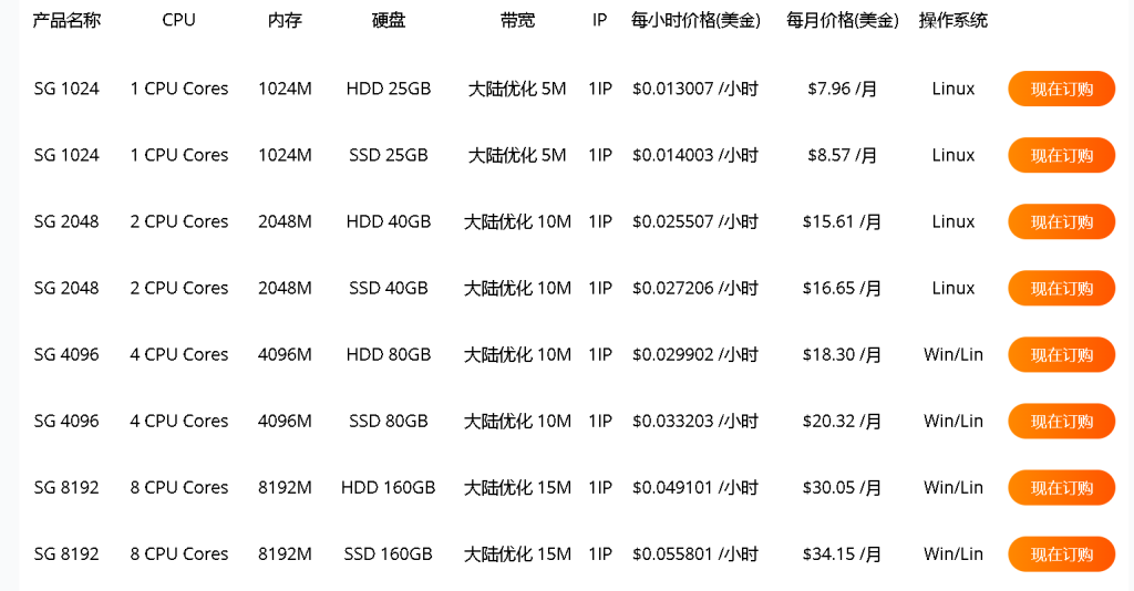 | 基础版 | 1核心 | 1GB | 20GB | 3TB | 60Mbps | 88元/月 | 点此购买 |