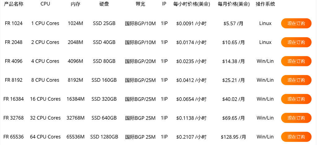 | 方案 | CPU | 内存 | NVMe | 流量 | 带宽 | 租用价格 | 购买地址 |
